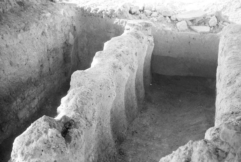 Estança del fòrum romà de la ciutat romana d’Empúries. S’hi pot veure una separació de manufactura molt erràtica que separava la sala en dues parts.