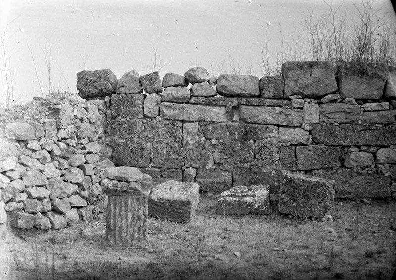 Atri de la domus 1 de la ciutat romana d’Empúries. En primer pla, l’ara trobada «in situ», que servia d’altar domèstic (s. I-II).