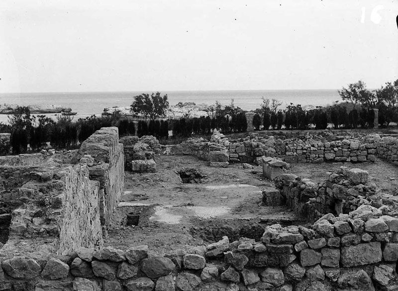 Vista de la «cella memoriae», antiga església paleocristiana situada a la zona septentrional de neàpolis. Aquesta estructura religiosa va aprofitar les restes de les termes de la ciutat. En primer pla, l’estança principal amb el paviment blanc de marbre i