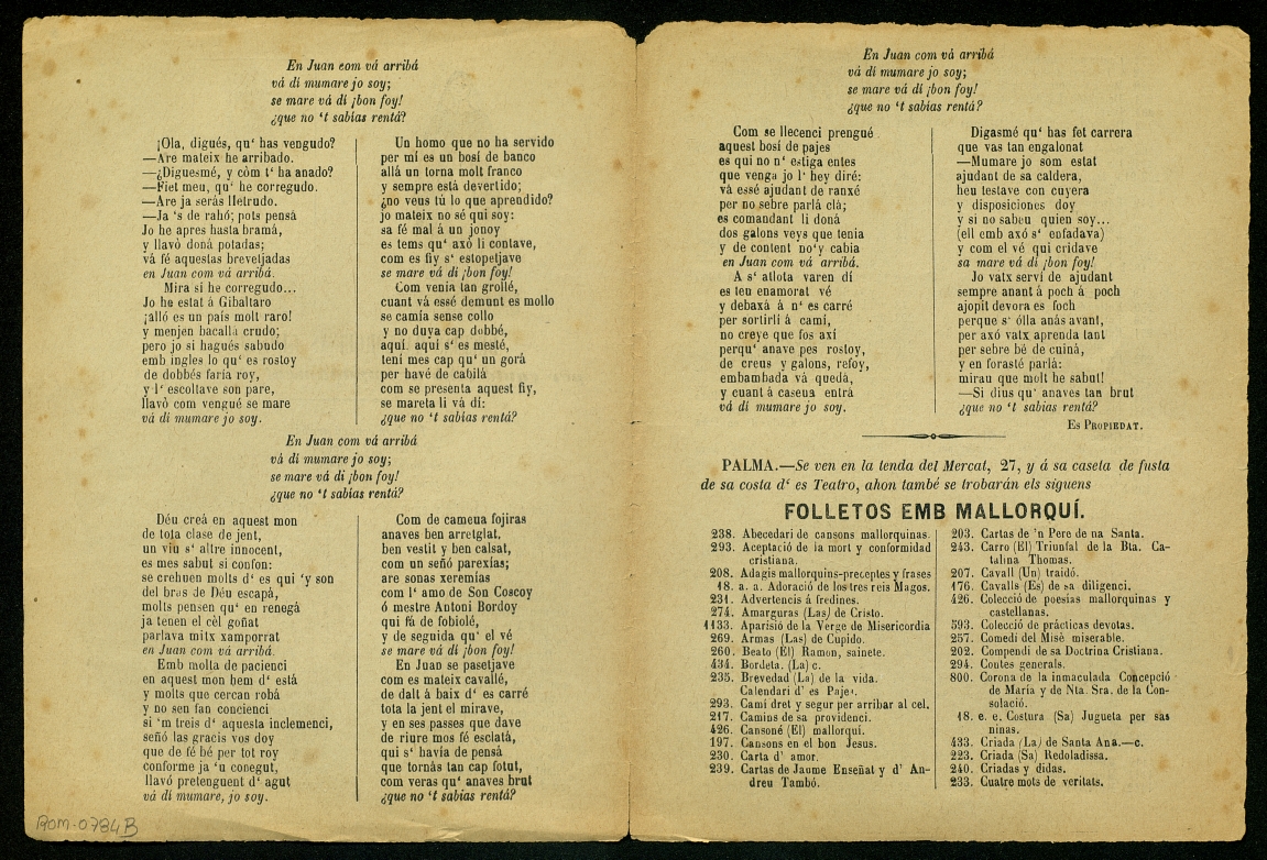 Dècimes de caire humorístic i amorós, escrites en la variant dialectal mallorquina.