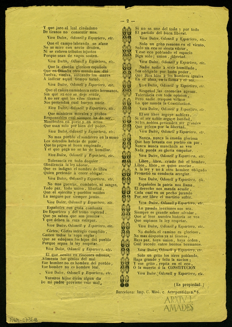 Romanço polític a favor del govern d'Espartero i O'Donnell, segurament es refereix al bienni progresista.