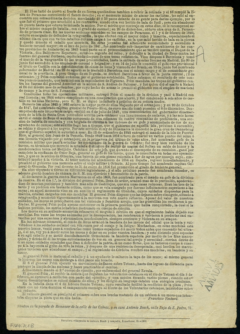 Ventura, Francisco. (1860) "Biografia del Teniente general D. Juan Porim : Conde de Reus. La cual dá cuenta de todos sus hechos de armas, desde su nacimiento hasta el dia presente.". Centre de Documentació de Cultura Popular. <http://hdl.handle.net/10687/120868>. [Consulta: ]