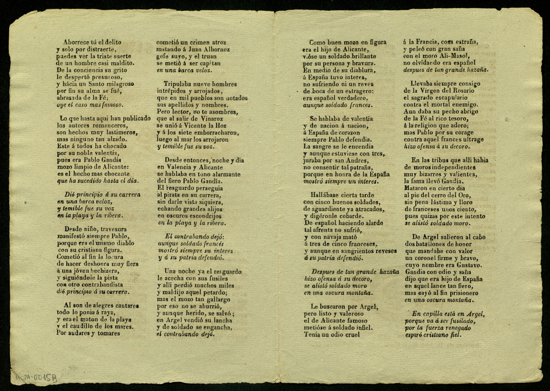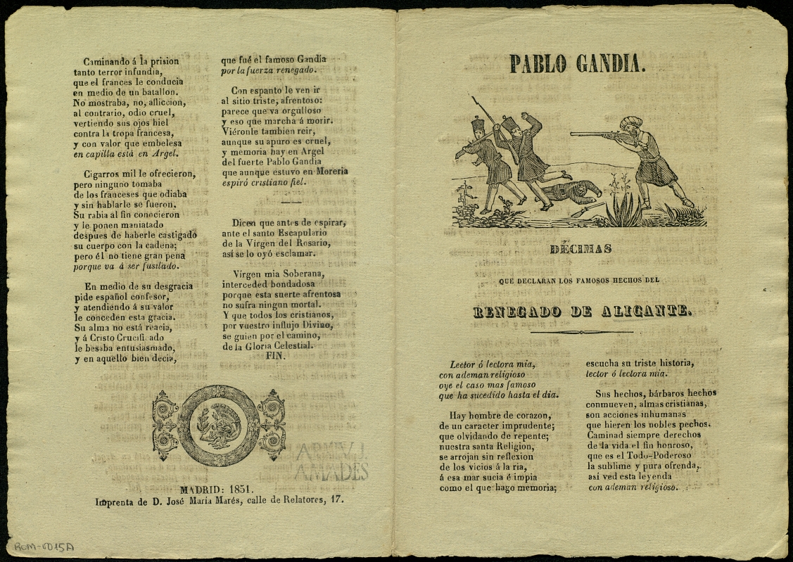 (1851) "Pablo Gandia ; Décimas : que declaran los famosos hechos del : Renegado de Alicante". Centre de Documentació de Cultura Popular. <