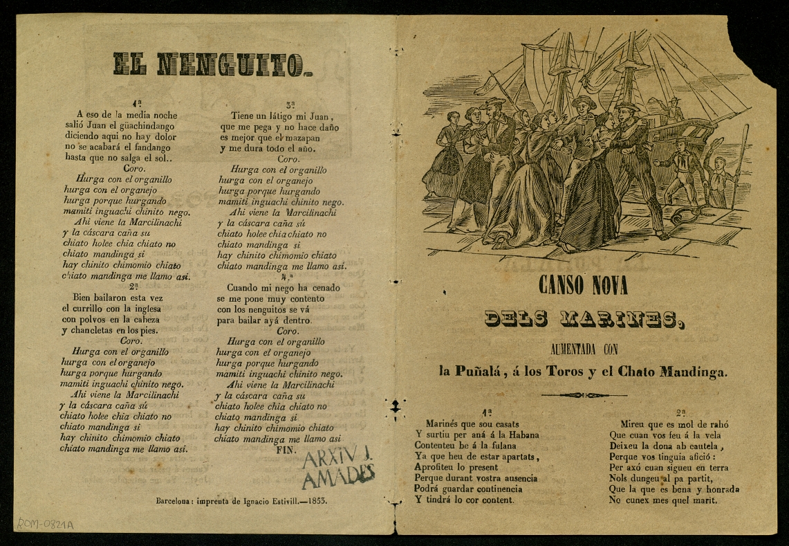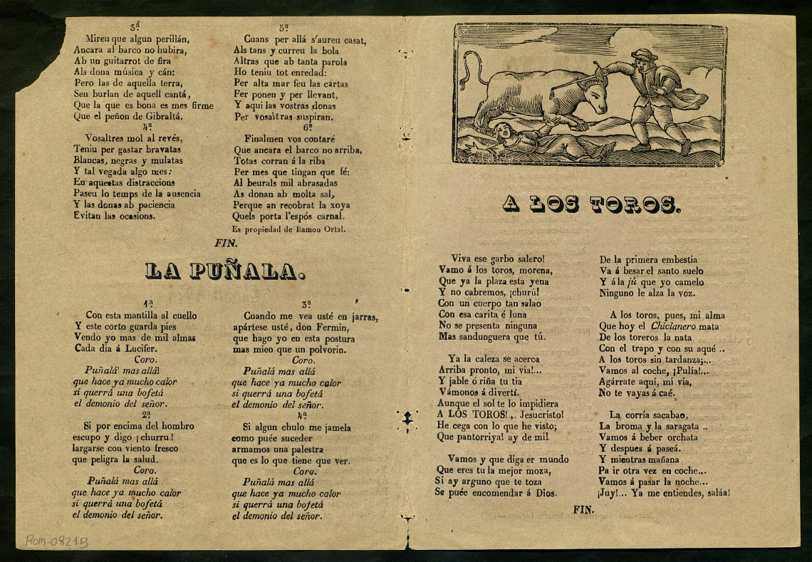 Ortal, Ramon. (1853) "Cansó nova dels mariners ; La Puñala ; A los toros ; El nenguito". Centre de Documentació de Cultura Popular. <http://hdl.handle.net/10687/121167>. [Consulta: ]