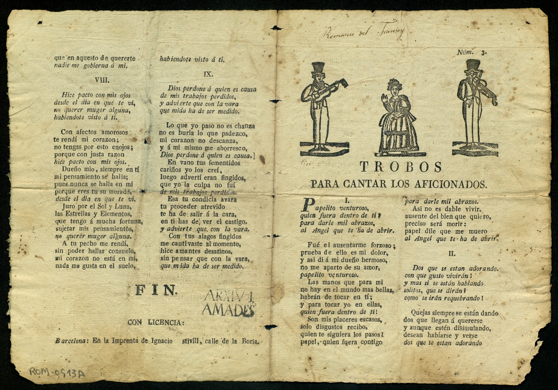 ([18-) "Trobos para cantar los aficionados". Centre de Documentació de Cultura Popular. <http://hdl.handle.net/10687/121264>. [Consulta: ]