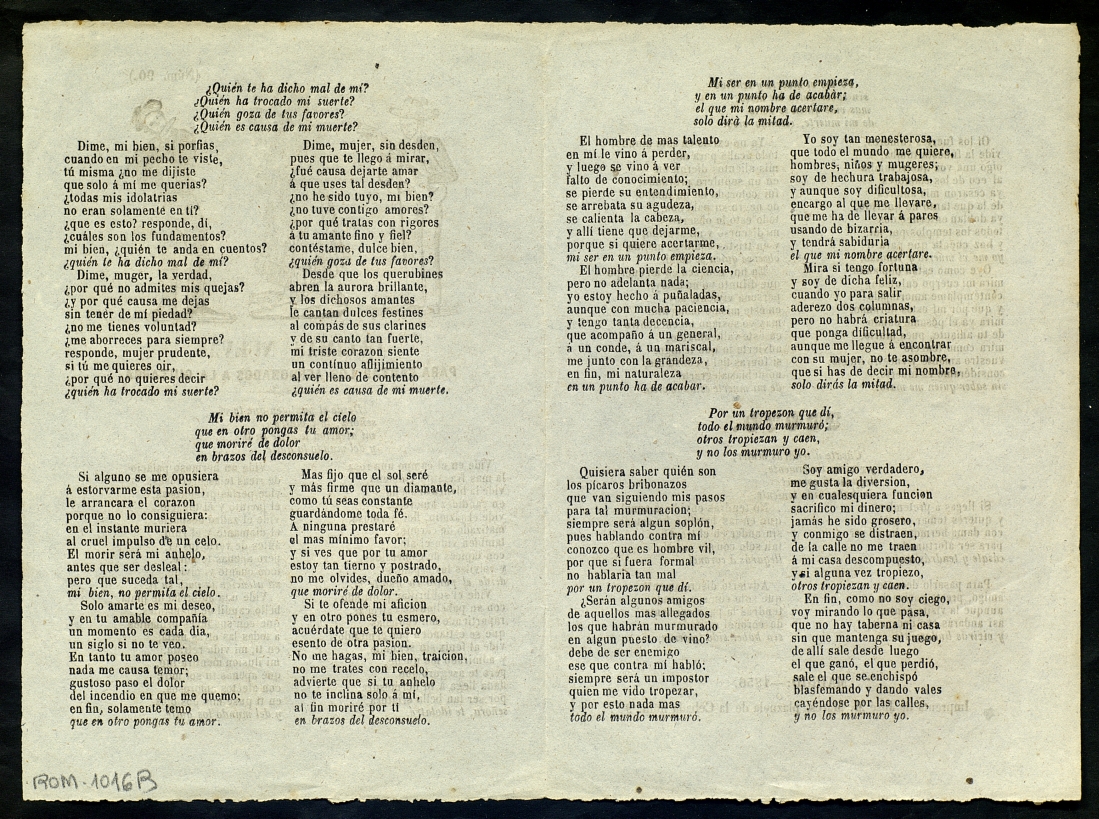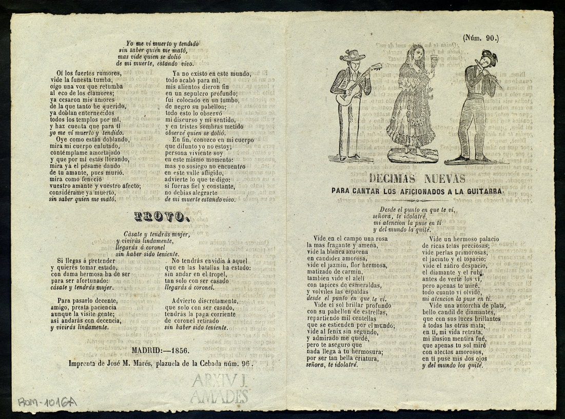 (1856) "Decimas nuevas : para cantar los aficionados a la guitarra ; Trovo". Centre de Documentació de Cultura Popular. <