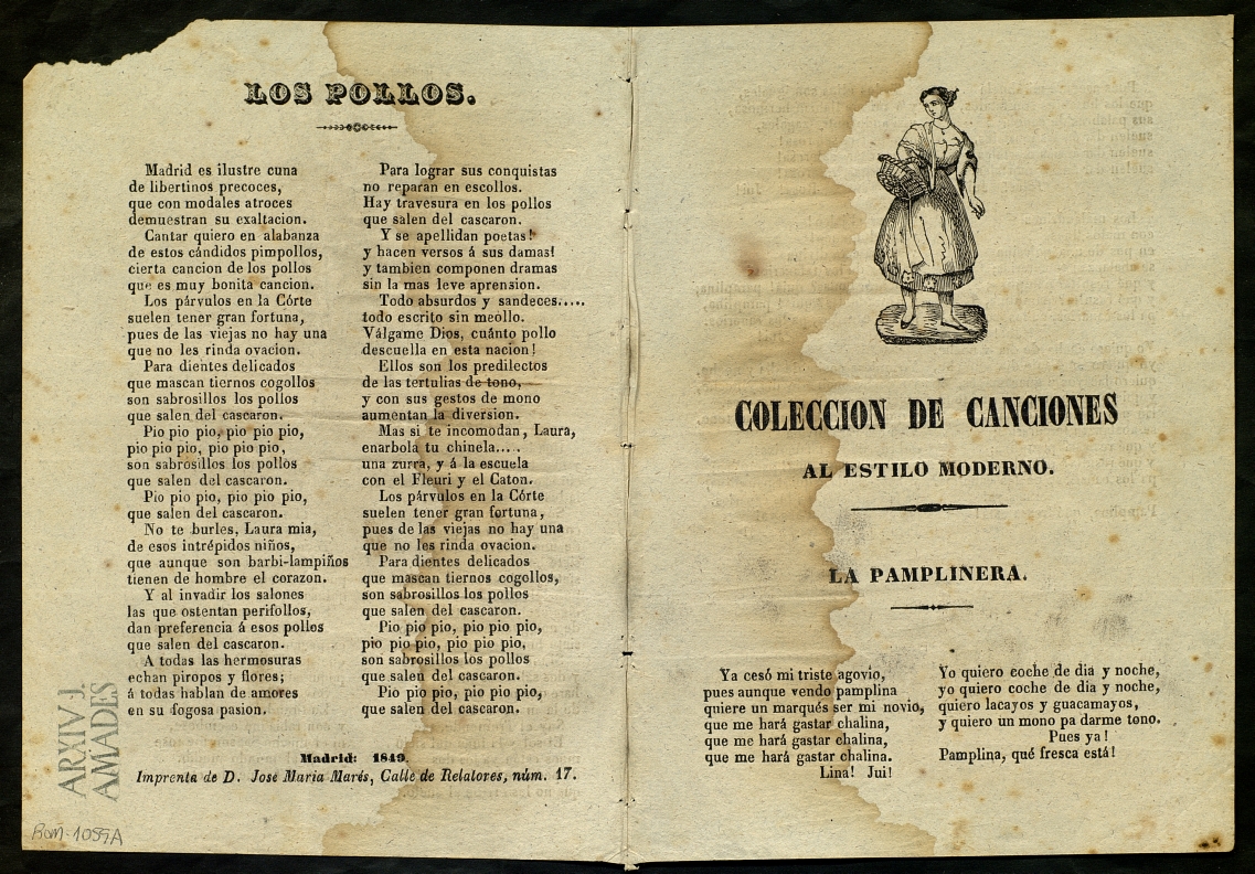 Cançó humorística d'una noia que es vol casar amb un home ric, cançó d'un home fatxenda i cançó de crítica contra els nois joves que volen festejar a totes les dones de la cort (també apareix al ROM-1076).
