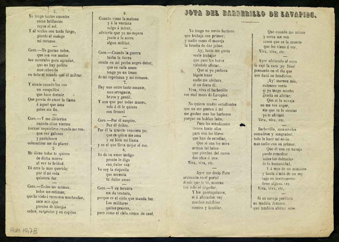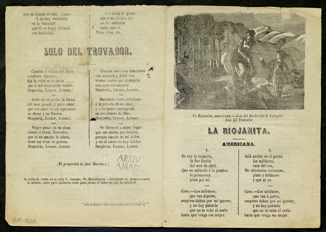 [Ferrer, Josep (àlies Queri)]. ([187) "La riojanita : americana ; Jota del barberillo de Lavapies ; Solo del trovador". Centre de Documentació de Cultura Popular. <http://hdl.handle.net/10687/228793>. [Consulta: ]