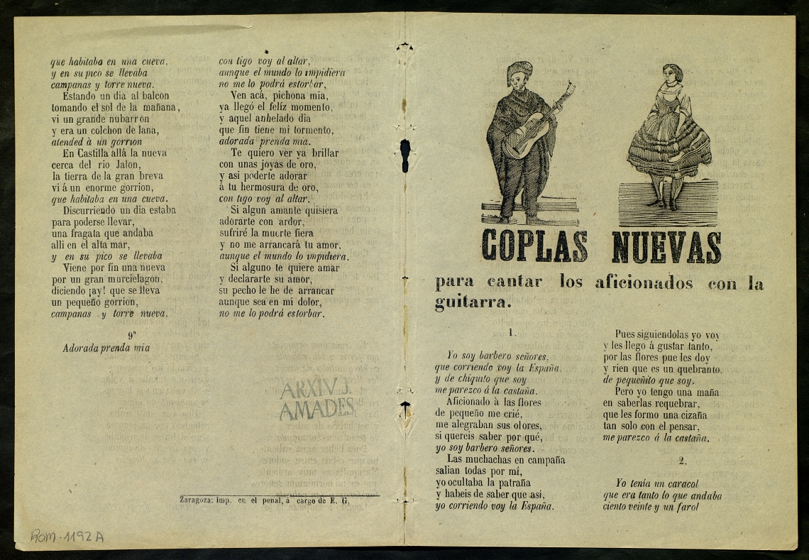 ([18-) "Coplas nuevas para cantar losa ficionados con la guitarra". Centre de Documentació de Cultura Popular. <http://hdl.handle.net/10687/228837>. [Consulta: ]