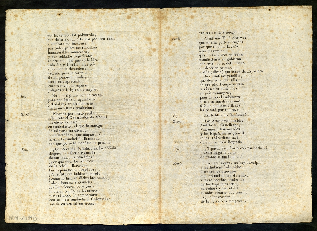 (1843) "Diálogo ocurrido entre Espartero y Zurbano en el puerto de Sta. Maria el dia 30 de julio del presente año 1843 antes de embarcarse para Lisboa". Centre de Documentació de Cultura Popular. <http://hdl.handle.net/10687/228973>. [Consulta: ]