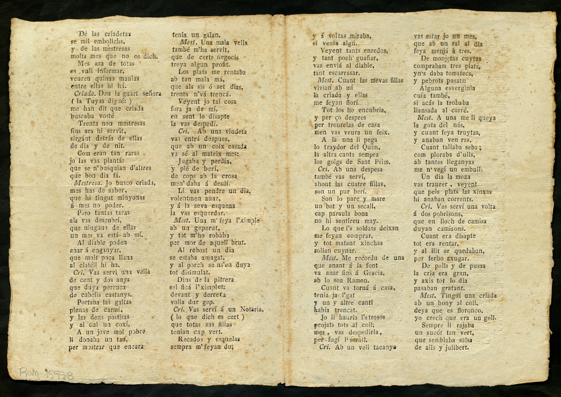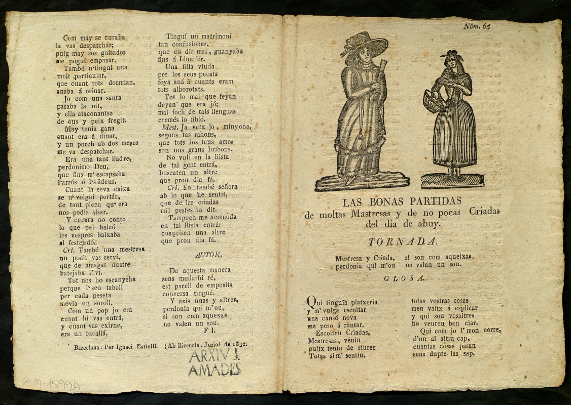 (1831) "Las bonas partidas de moltas Mastresas y de no pocas Criadas del dia de abuy". Centre de Documentació de Cultura Popular. <http://hdl.handle.net/10687/229236>. [Consulta: ]