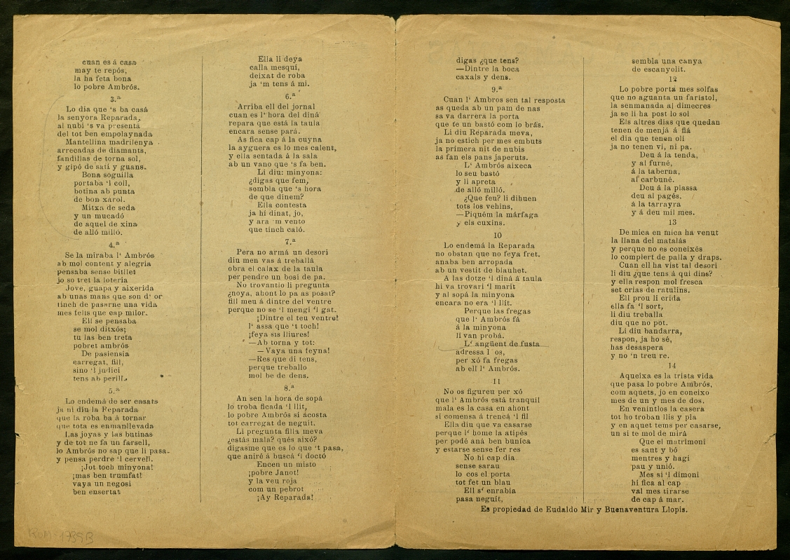 ([18-) "Cansó divertida ahont se relatan los neguits y penas del Ambrós ab la seva dona ; Los toca campanas". Centre de Documentació de Cultura Popular. <http://hdl.handle.net/10687/229373>. [Consulta: ]
