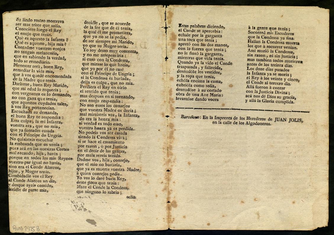 "Trata de cómo mató à su Muger para casarse con la Infanta". Una edició similar al ROM-3369.