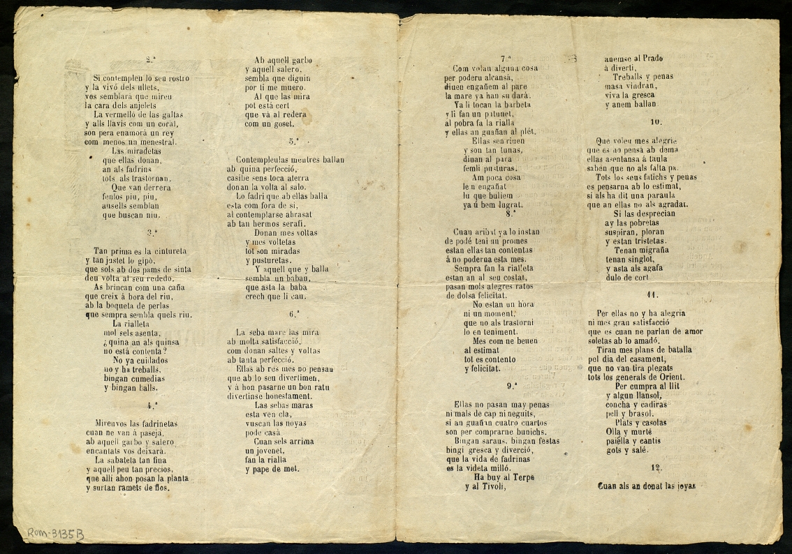 ([18-) "Cansó nova y divertida : la cual esplica la bona vida que disfrutan las minyonas, mentras son solteras". Centre de Documentació de Cultura Popular. <