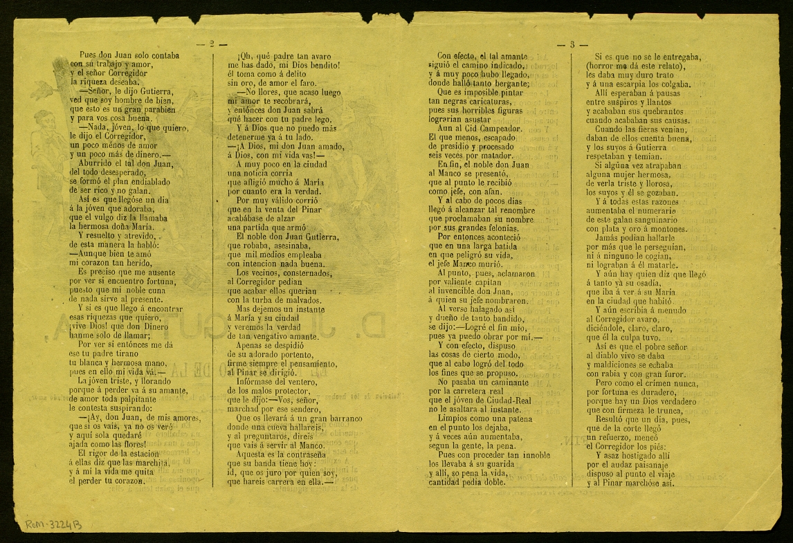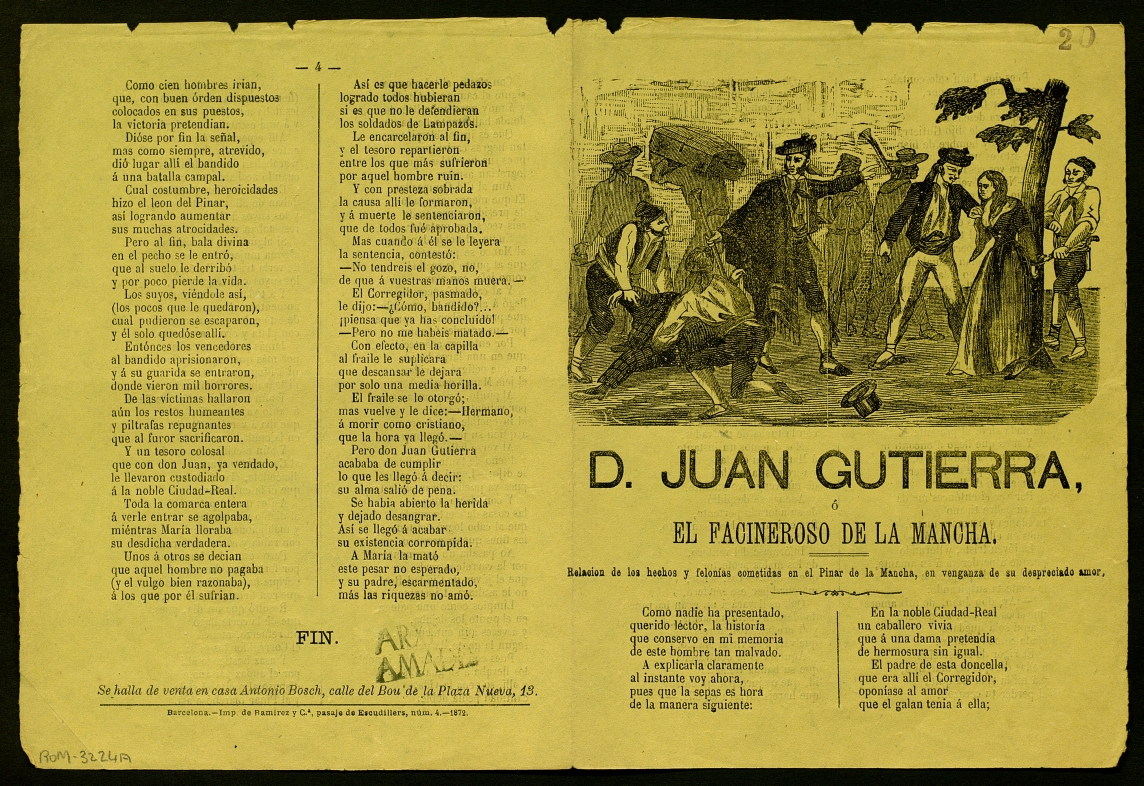 "Relacion de los hechos y felonías cometidas en el Pilar de la Mancha, en venganza de su despreciado amor". Una altra edició al ROM-3225.