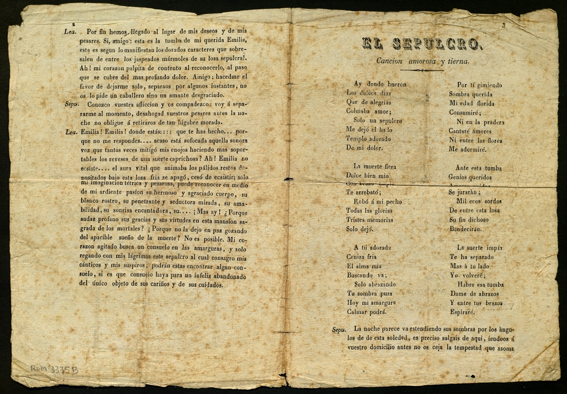 ([18-) "El sepulcro : ó lo que puede el amor ; El sepulcro : cancion amorosa y tierna". Centre de Documentació de Cultura Popular. <http://hdl.handle.net/10687/293006>. [Consulta: ]