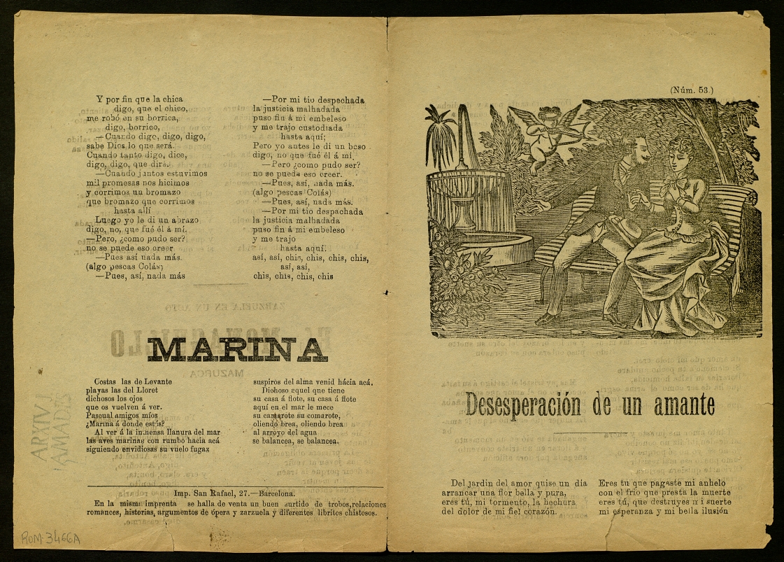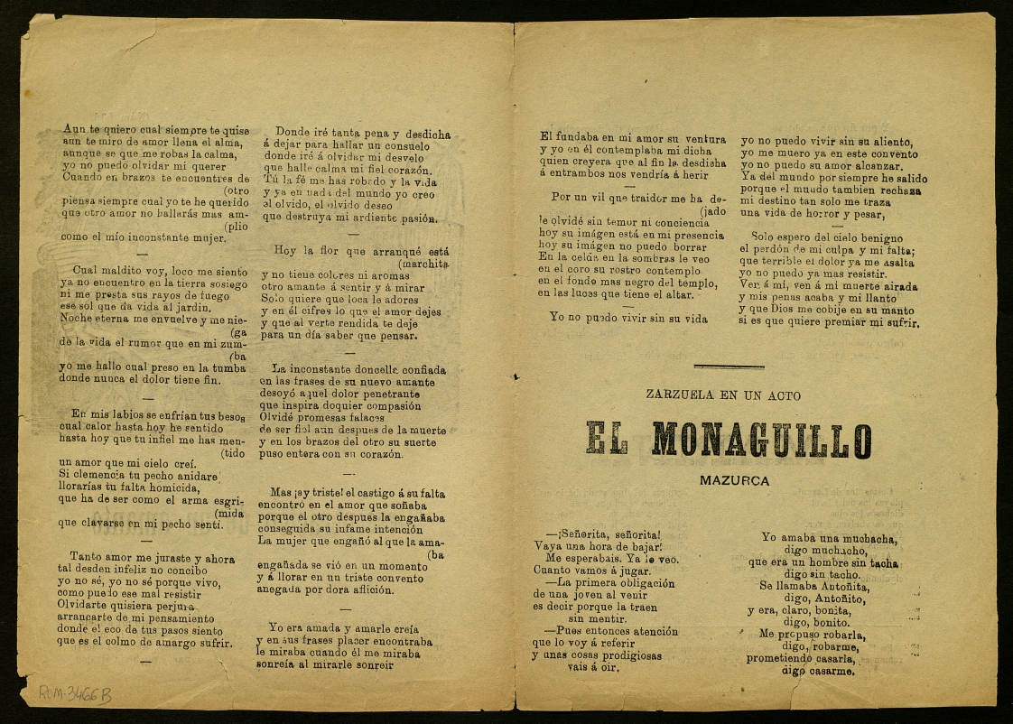 ([18-) "Desesperación de un amante ; Zarzuela en un acto : el monaguillo : mazurca ; Marina". Centre de Documentació de Cultura Popular. <http://hdl.handle.net/10687/293150>. [Consulta: ]