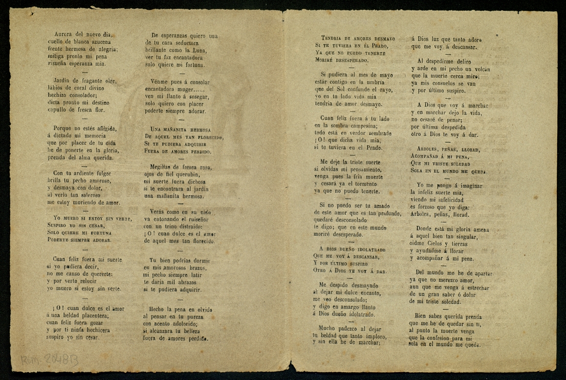 (1859) "Trovos nuevos y amorosos para cantar un galan á una dama que quiera pretender ; Mi angel seductor". Centre de Documentació de Cultura Popular. <http://hdl.handle.net/10687/293250>. [Consulta: ]