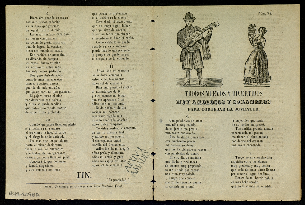 ([18-) "Trobos nuevos y divertidos : muy amorosos y salameros : para cortejar la juventud". Centre de Documentació de Cultura Popular. <http://hdl.handle.net/10687/293304>. [Consulta: ]