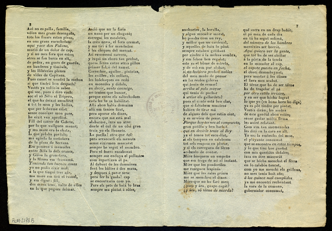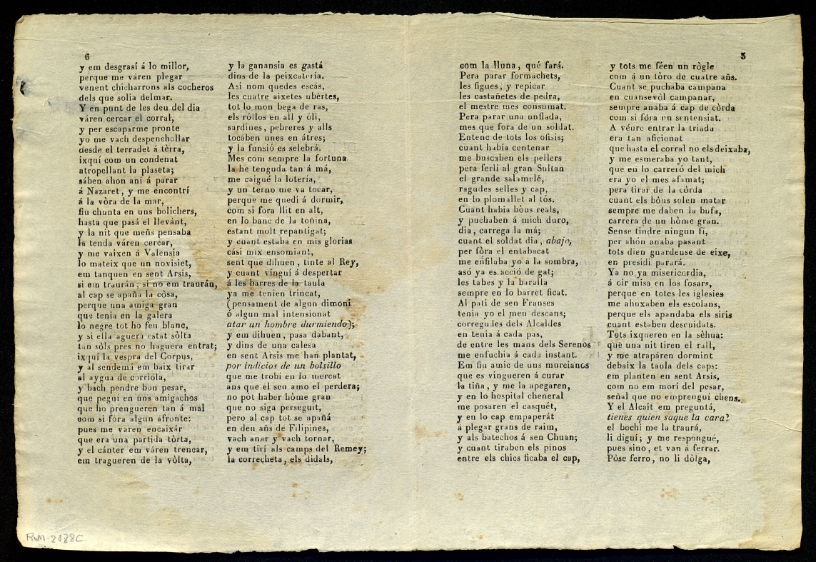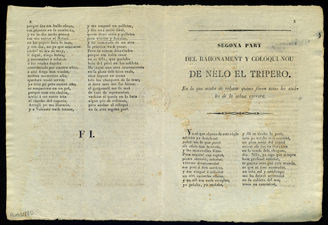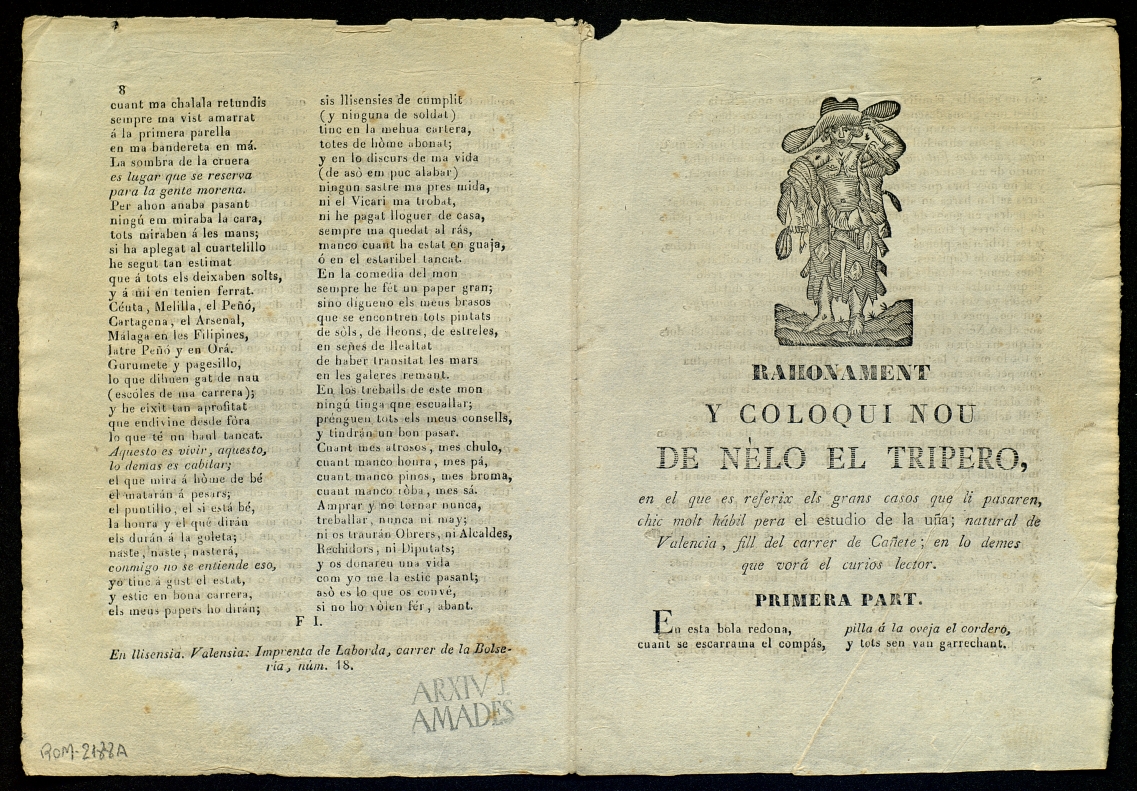"En el que es referix els grans casos que li pasaren, chic molt hábil pera el estudio de la uña: natural de Valensia, fill del carrer de Cañete". És un dels primers documents on es parla de la paella valenciana. La primera part també al ROM-1840 i la segona part al ROM-1901 i ROM-2492.