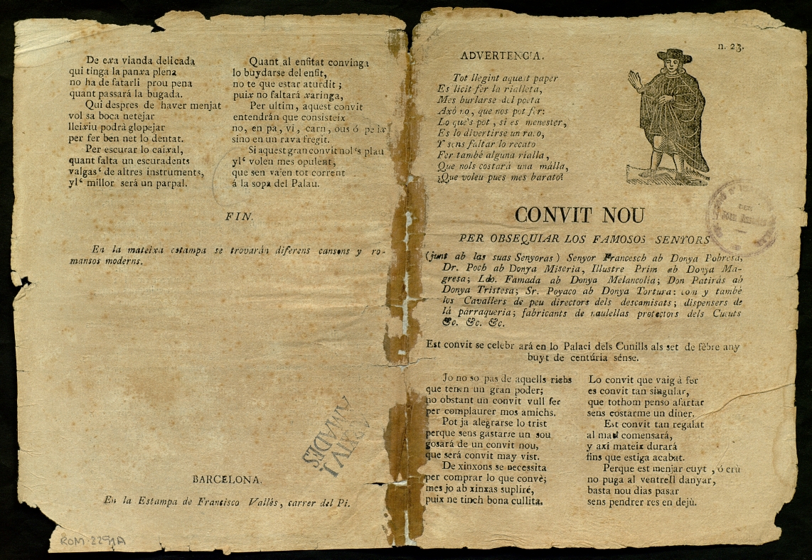([18-) "Convit nou : per obsequiar los famosos senyors…". Centre de Documentació de Cultura Popular. <http://hdl.handle.net/10687/293518>. [Consulta: ]