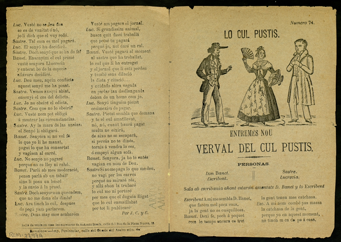 ([18-) "Lo cul pustis : entremes nou : verval del cul pustis". Centre de Documentació de Cultura Popular. <http://hdl.handle.net/10687/293525>. [Consulta: ]