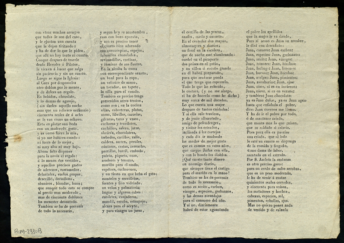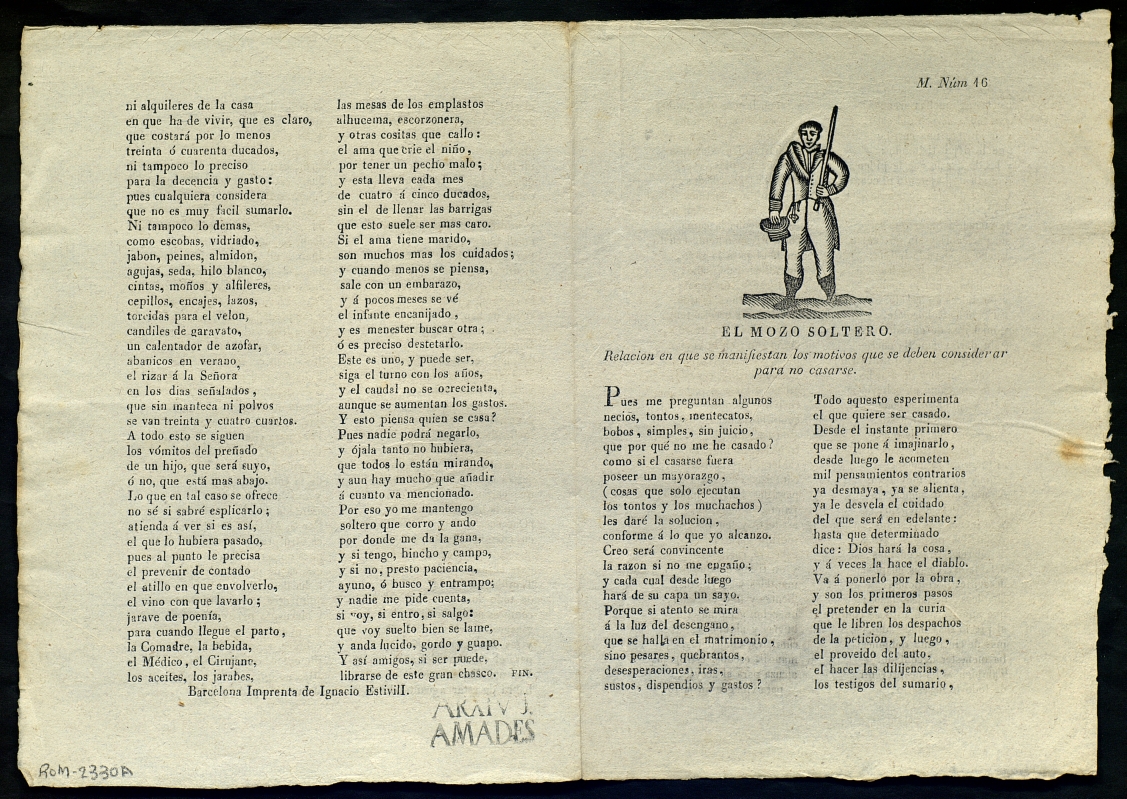 "Relación en que se manifiestan los motivos que se deven considerar para no casarse." Una altra edició al ROM-1641 i ROM-1925.