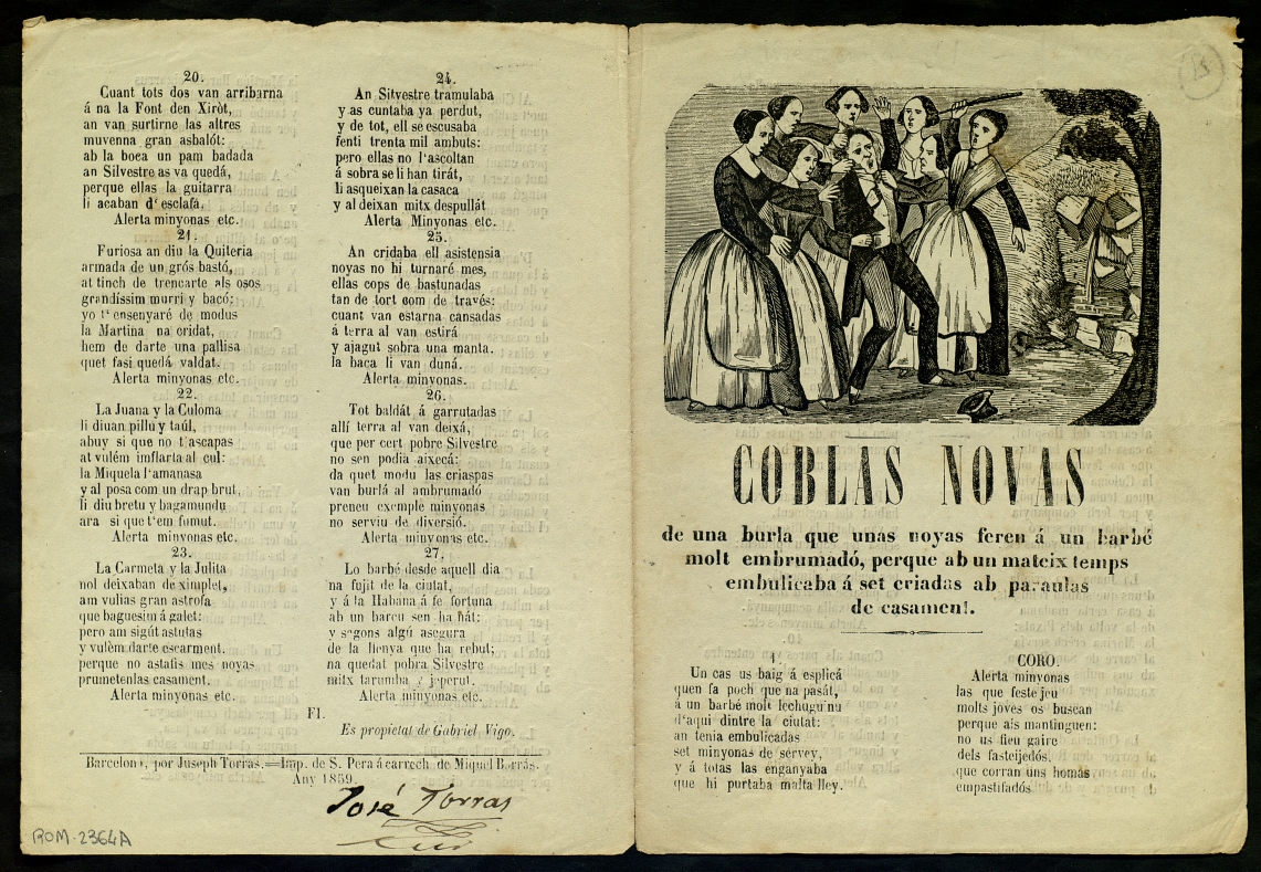 "…de una burla que unas noyas feren á un barbé molt embrumadó, perque ab un mateix temps embulicaba á set criadas ab paraulas de casament"