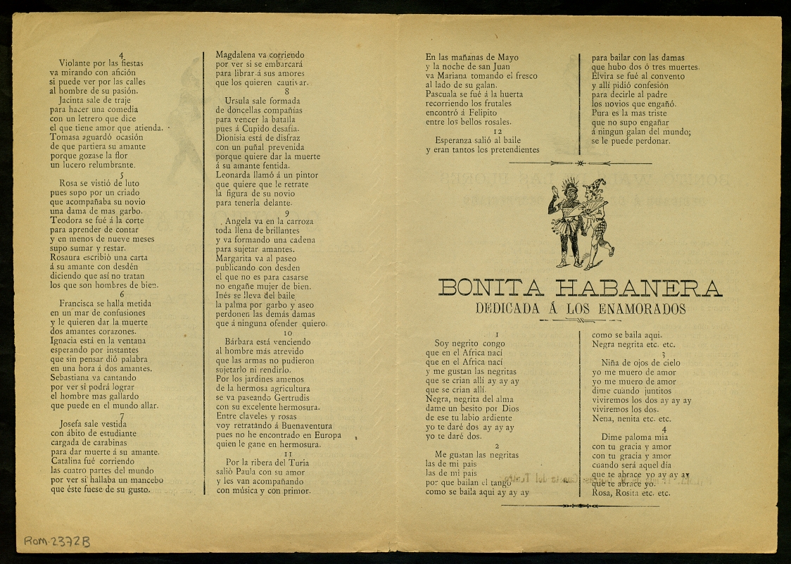 ([18-) "Bonito tango : dedicado á los novios para enamorarse de las mujeres caprichosas : primera parte ; Bonita habanera : deidcada á los enamorados : Bonito wals de las flores : dedicado á un amante despreciado". Centre de Documentació de Cultura Popular. <http://hdl.handle.net/10687/293608>. [Consulta: ]