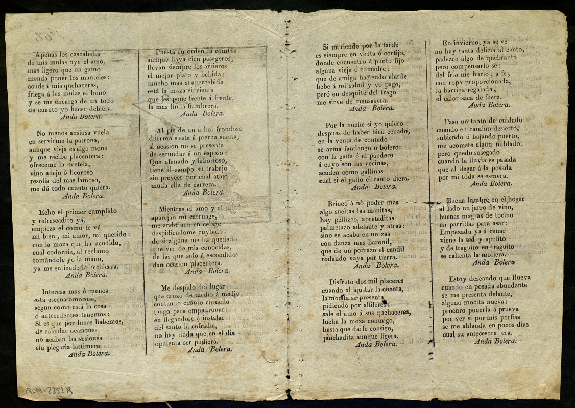 Gravat xilogràfic a la capçalera emmarcat dins d'una vinyeta. Text a dues columnes separades per corondell. Diverses tipografies al títol. Estat de conservació bo, si bé està acidificat, embrutit i té petites llacunes. Paper mecànic.
