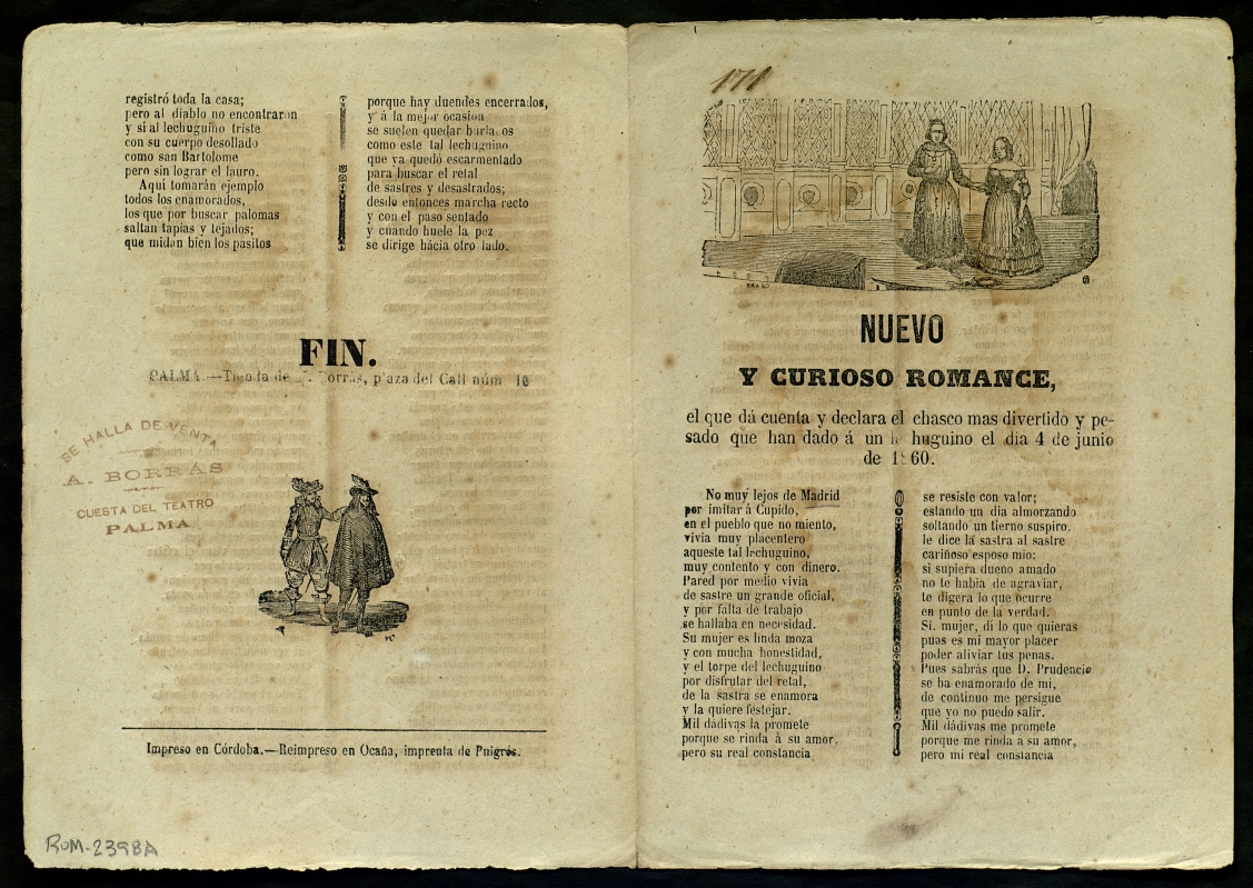 ([186) "Nuevo y curioso romance : el que dá cuenta y declara el chasco mas divertido y pesado que han dado á un lechuguino el dia 4 de junio de 1860". Centre de Documentació de Cultura Popular. <http://hdl.handle.net/10687/293637>. [Consulta: ]