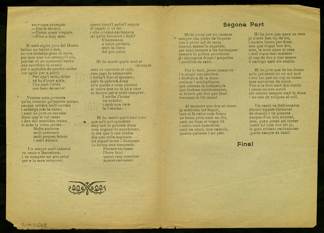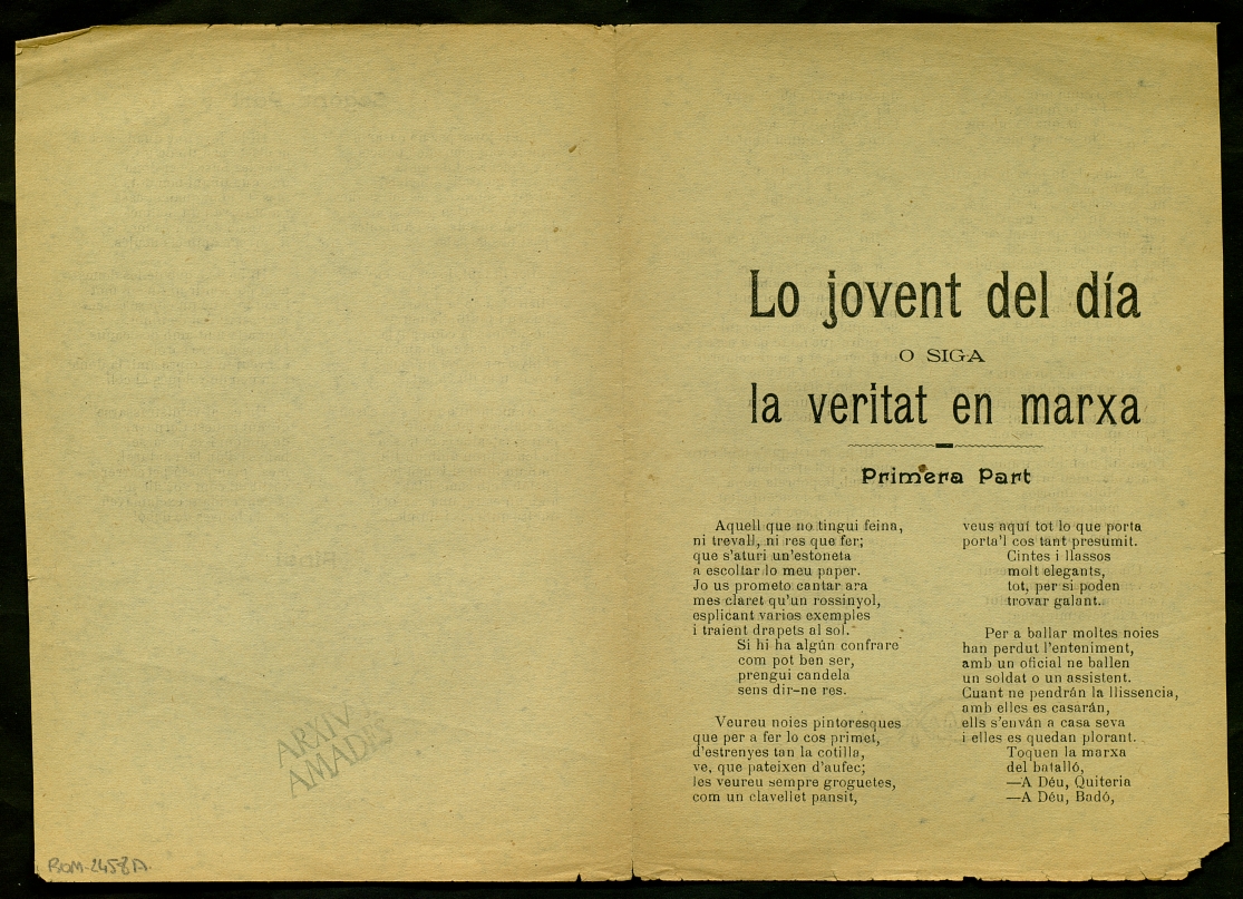 ([18-) "Lo jovent del día : o siga la veritat en marxa : primera part : segona part". Centre de Documentació de Cultura Popular. <http://hdl.handle.net/10687/293704>. [Consulta: ]