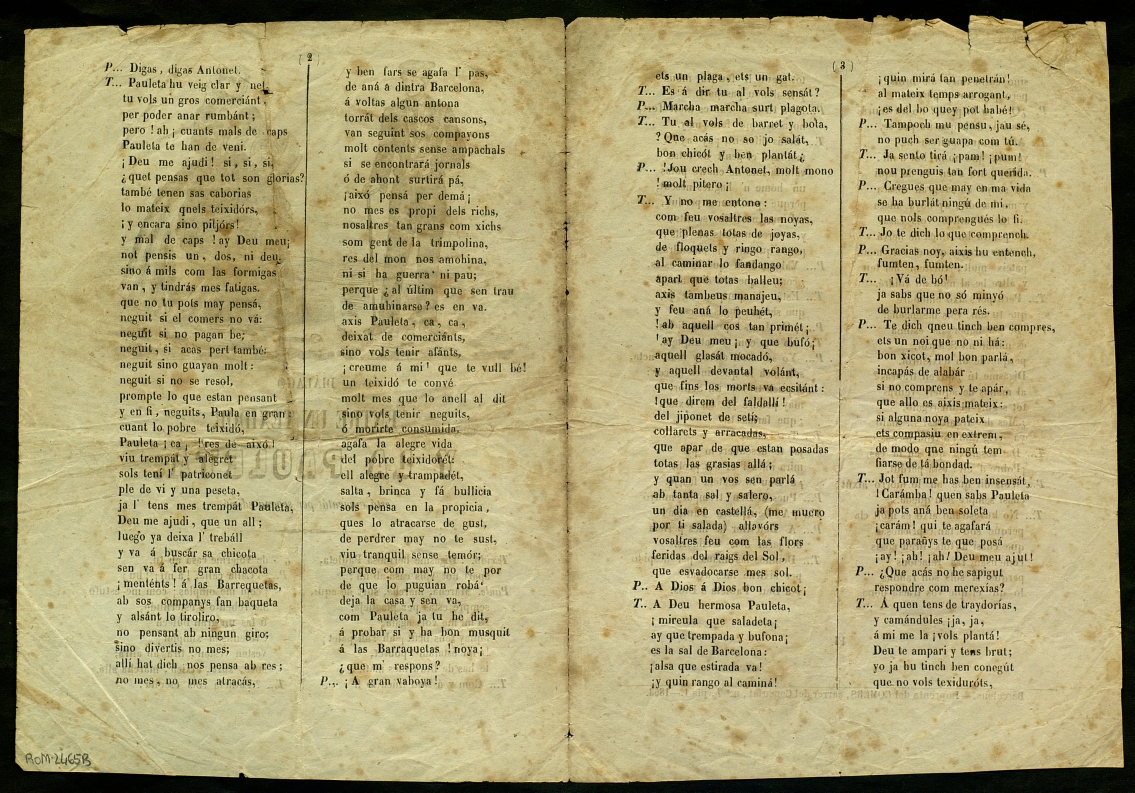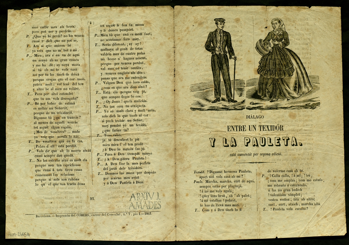 Dos gravats xilogràfics a la capçalera. Text a dues columnes separades per corondell. Ornamentació sota el títol. Diverses tipografies al títol. Estat de conservació regular, si bé està acidificat, té múltiples taques de fòxing i els marges fatigats. Paper mecànic.