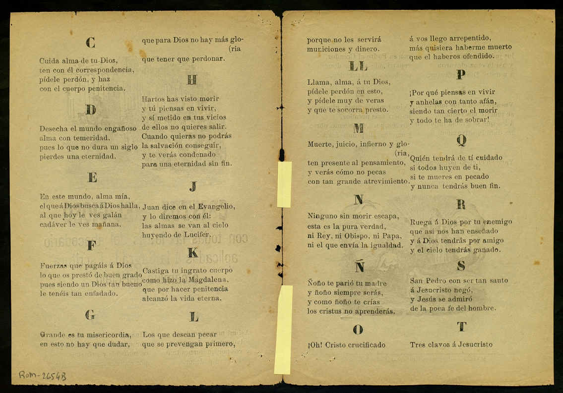 Versos de temàtica religiosa que juga amb les lletres del abecedari.