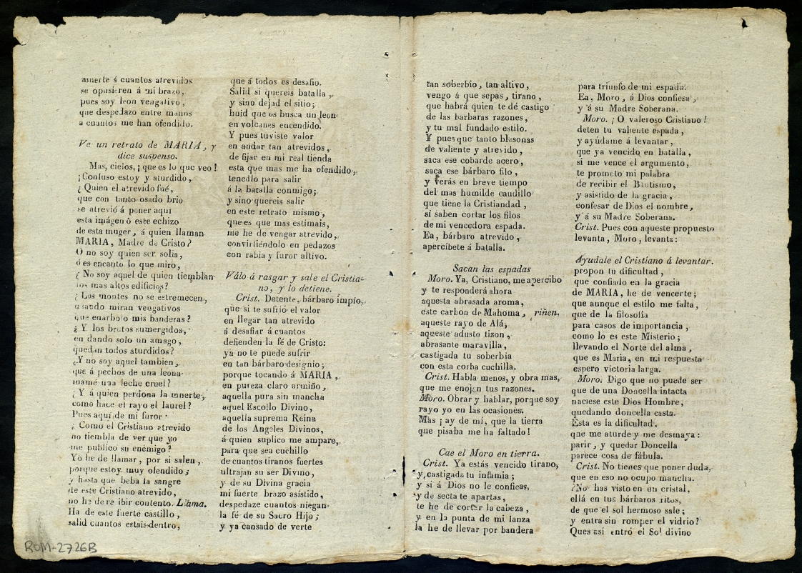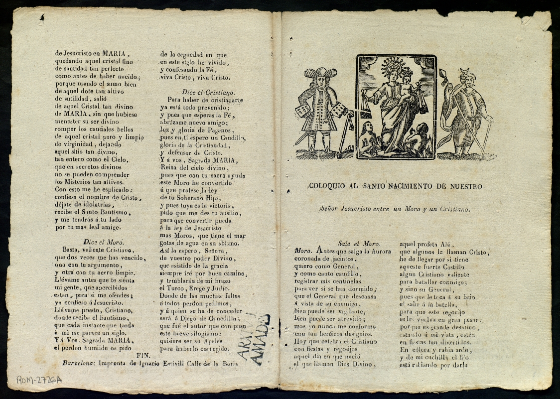 ([18-) "Coloquio al Santo nacimiento de Nuestro Señor Jesucristo entre un Moro y un Cristiano". Centre de Documentació de Cultura Popular. <http://hdl.handle.net/10687/294001>. [Consulta: ]