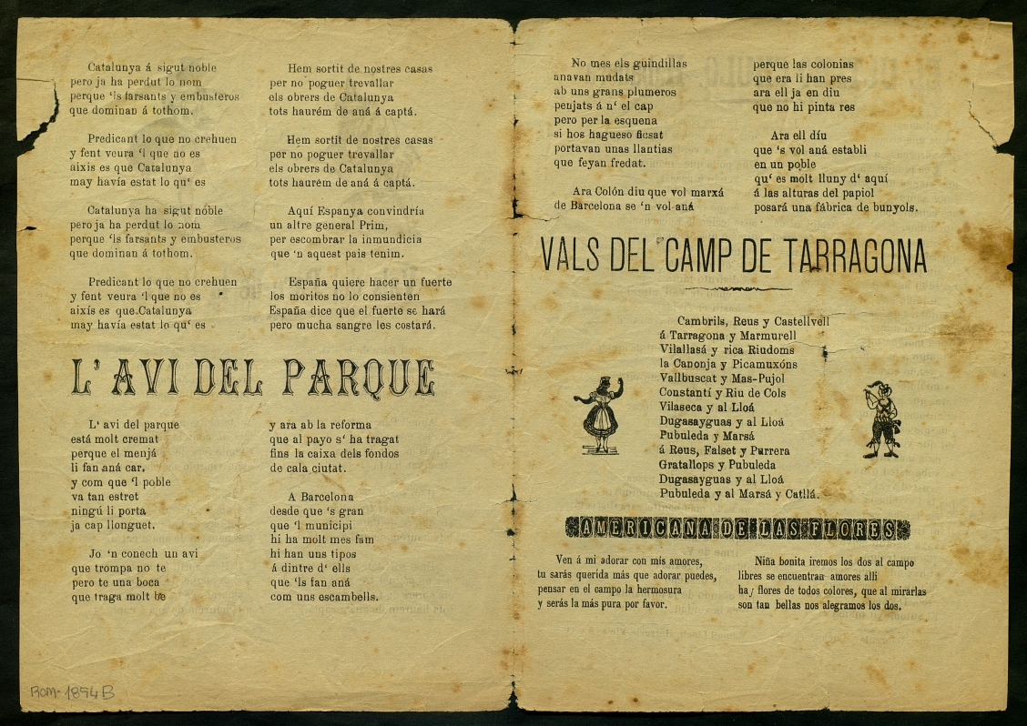 ([18-) "Vals del Pare de la Patria ; L'avi del parque ; Vals del camp de Tarragona ; Americana de las flores ; El último chulo : habanera". Centre de Documentació de Cultura Popular. <http://hdl.handle.net/10687/294009>. [Consulta: ]