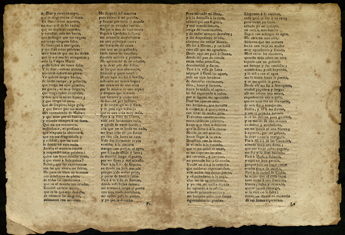 Gravat xilogràfic a la capçalera emmarcat dins d'una vinyeta ornamentada. Mateix gravat al ROM-2371. Text a dues columnes. Estat de conservació regular, si bé està molt acidificat i té els marges fatigats. Paper verjurat.