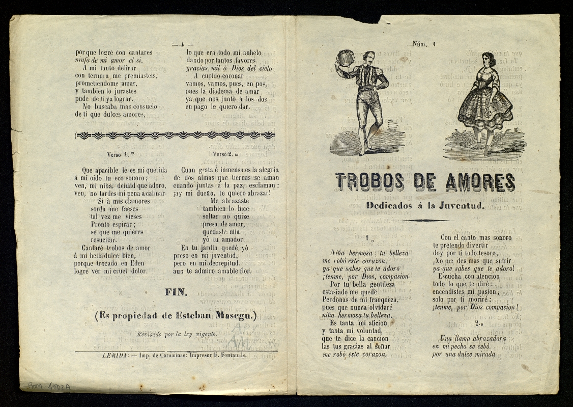 ([18-) "Trobos de amores : dedicados á la juventud". Centre de Documentació de Cultura Popular. <