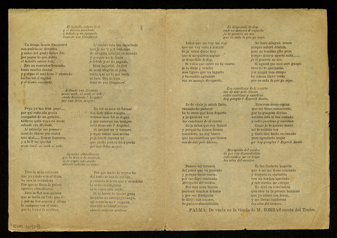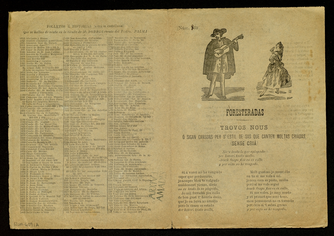 ([18-) "Foresteradas : trovos nous ó sigan cansons per s'estil de sas que canten moltas criadas (sense criá)". Centre de Documentació de Cultura Popular. <
