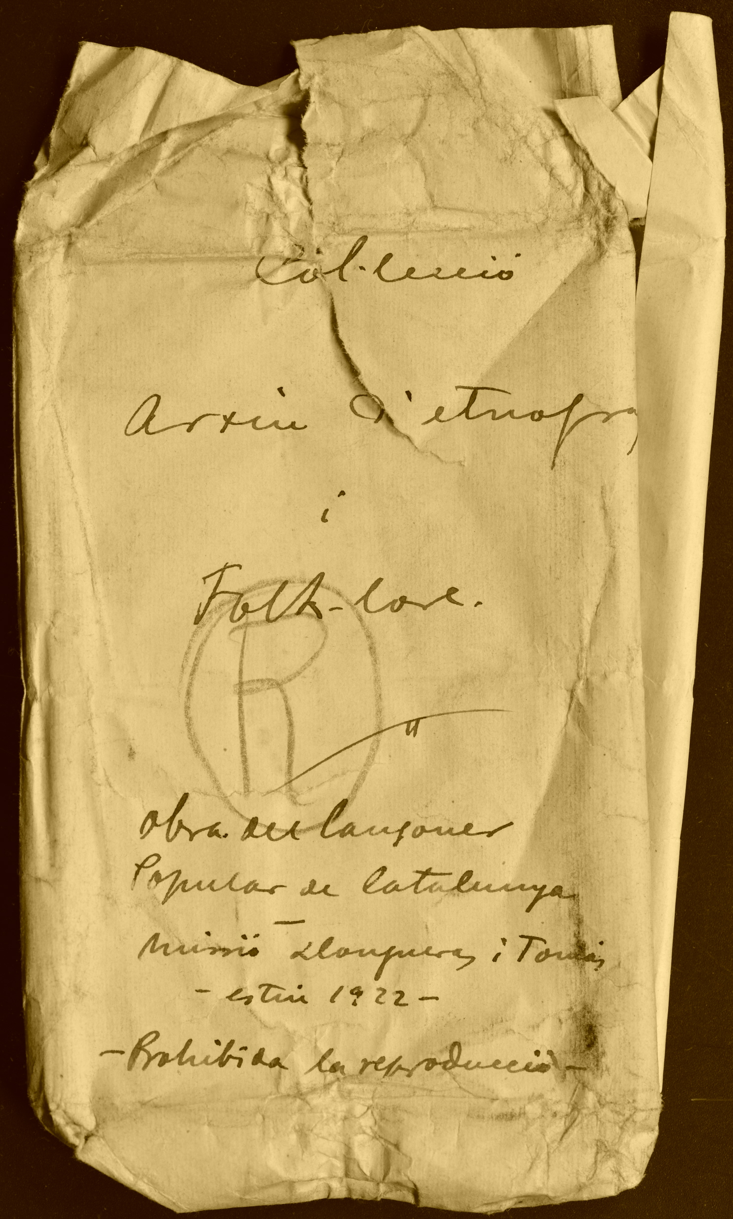 TOMÀS, Joan; LLONGUERAS, Joan. ([ent) "Col·lecció arxiu d'etnografia i folklore - Obra del Cançoner Popular de Catalunya Missió Llongueras i Tomàs - Estiu 1922- Prohibida la reproducció". Centre de Documentació de Cultura Popular. <http://hdl.handle.net/10687/448783>. [Consulta: ]